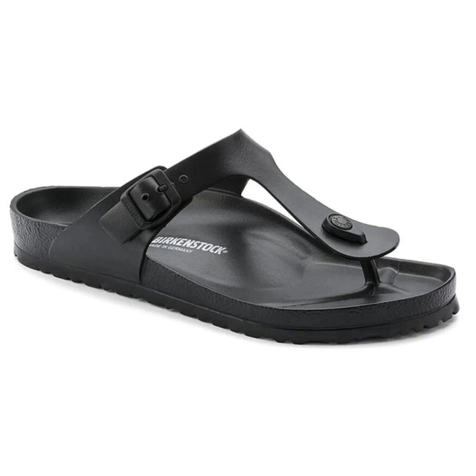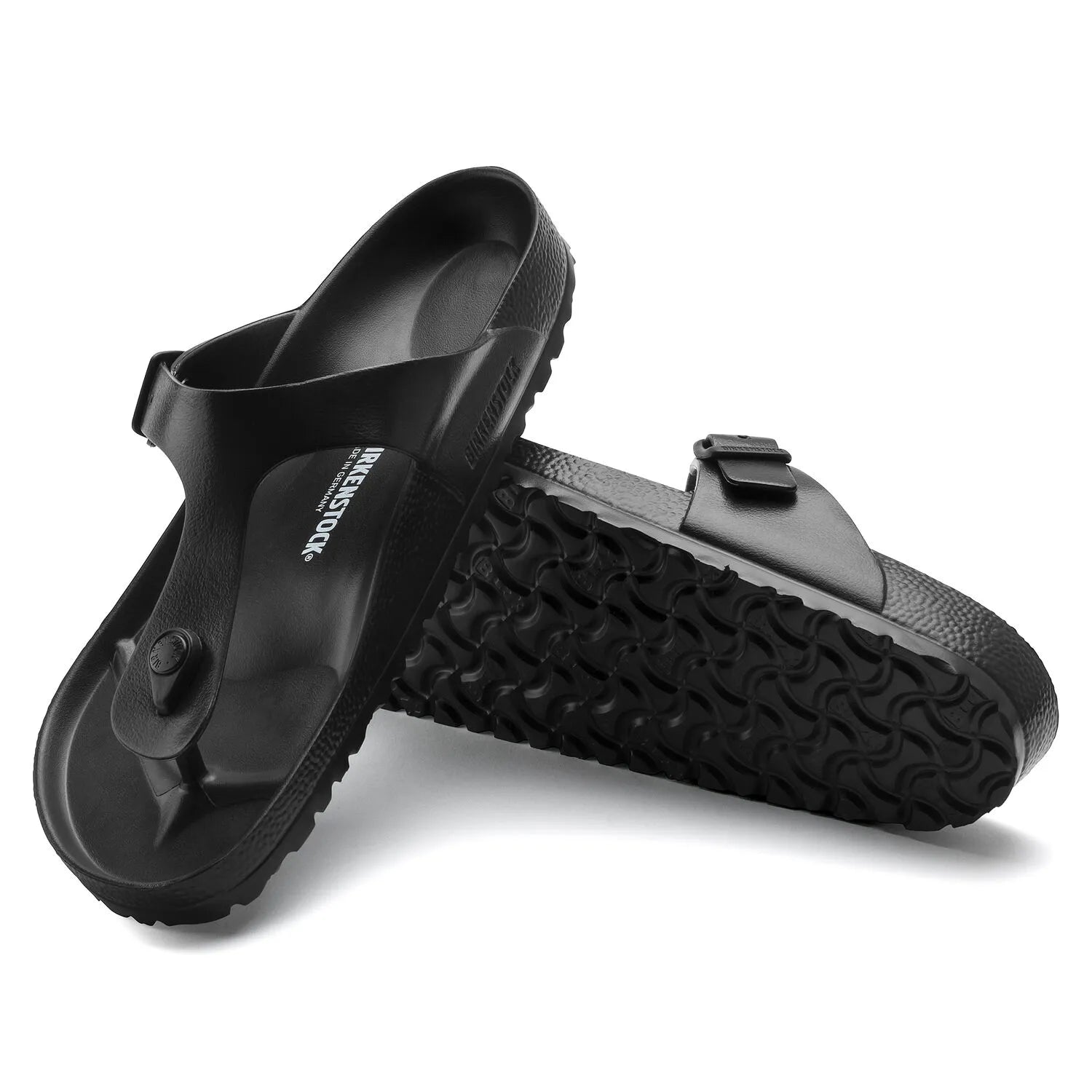 The Gizeh - a modern thong sandal from BIRKENSTOCK. This version made from ultra light and highly flexible EVA. These sandals are shock absorbing, waterproof, and skin-friendly. Wear them at the beach, in the garden, or around the gym and after workouts. It's the perfect addition to your classic BIRKENSTOCK sandals.