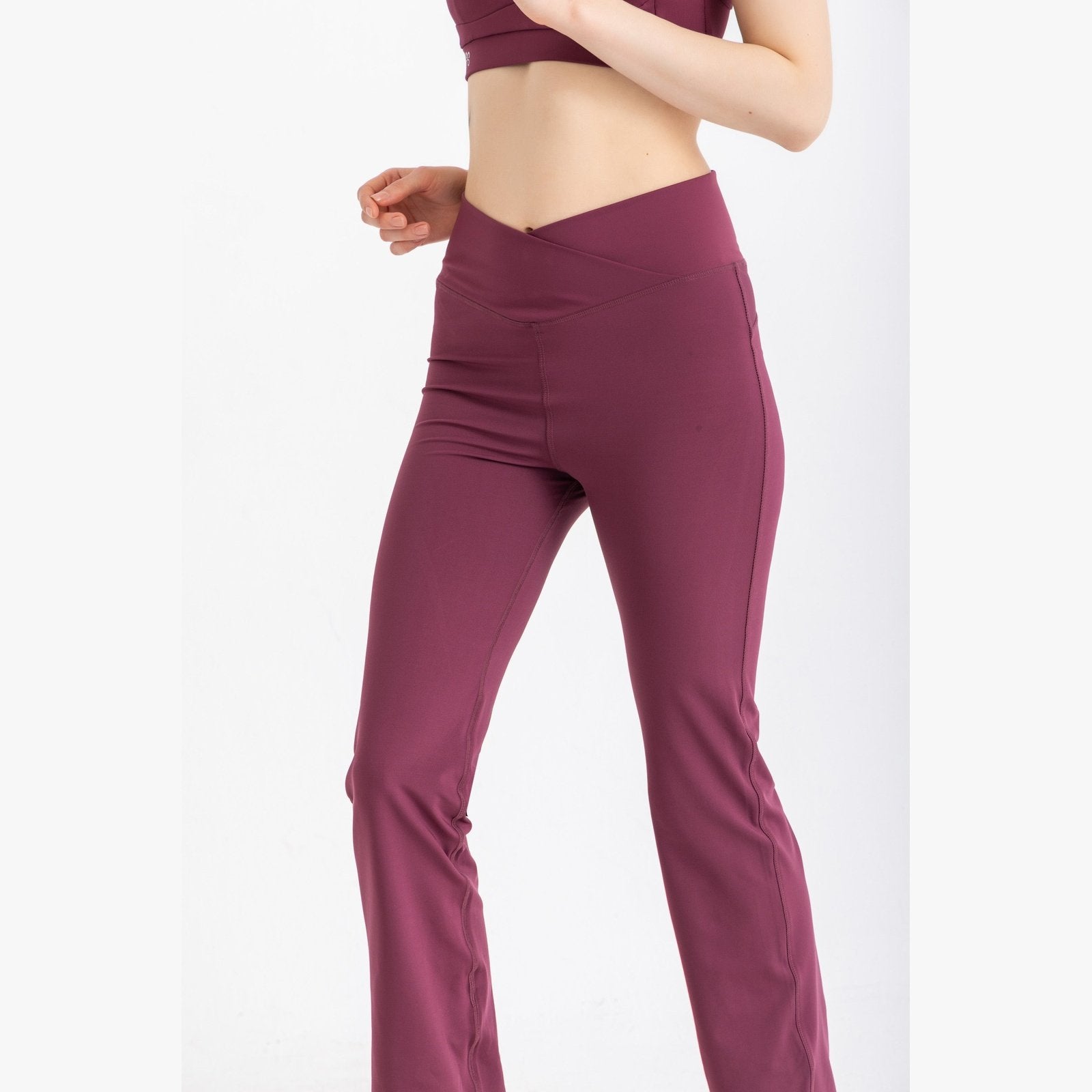 What sets these leggings apart is the unique V cut shape on the waist, adding a touch of sophistication to your athletic wear collection. The slight flare from the knee down not only enhances the overall aesthetic but also provides an extra level of comfort, allowing you to move with ease during your workouts.