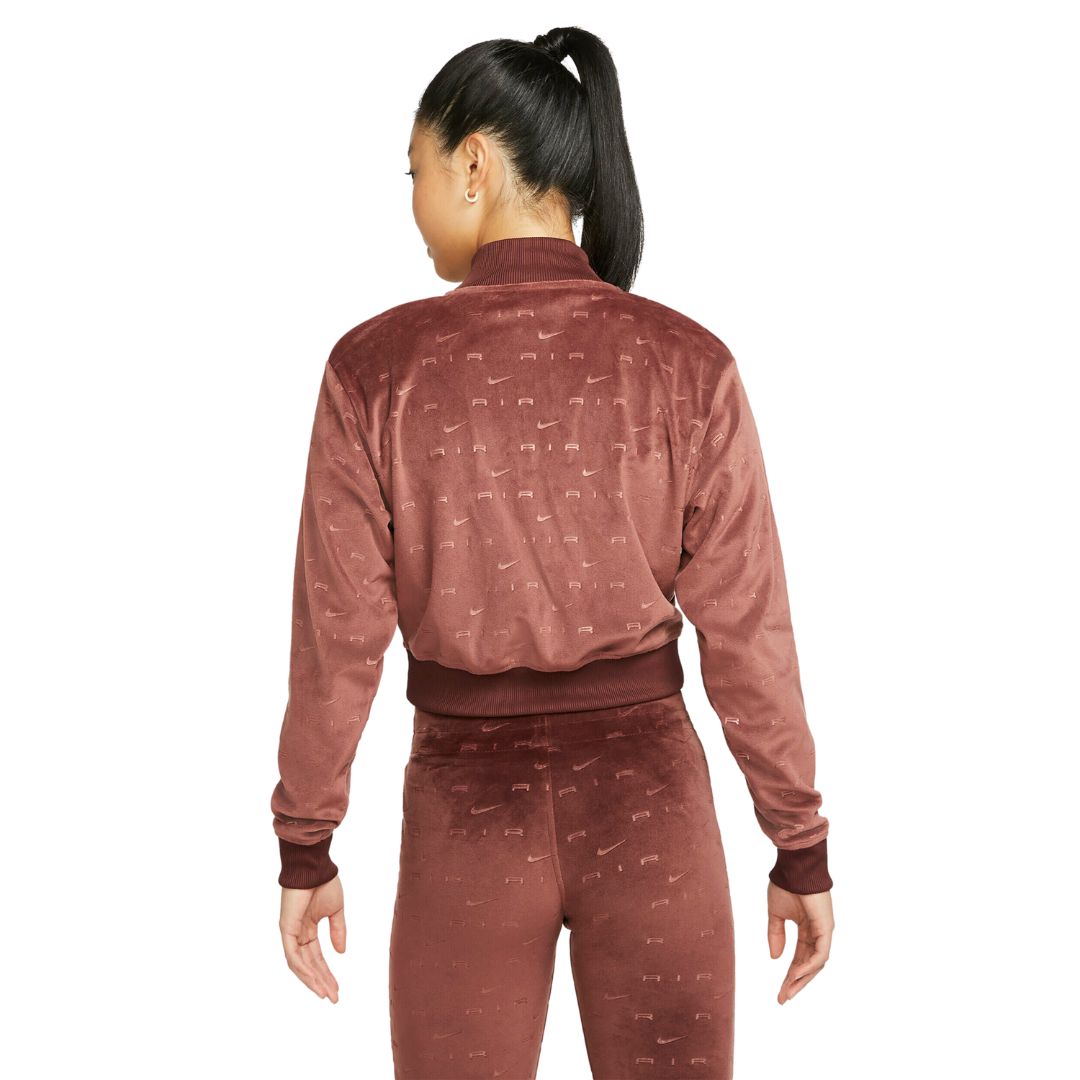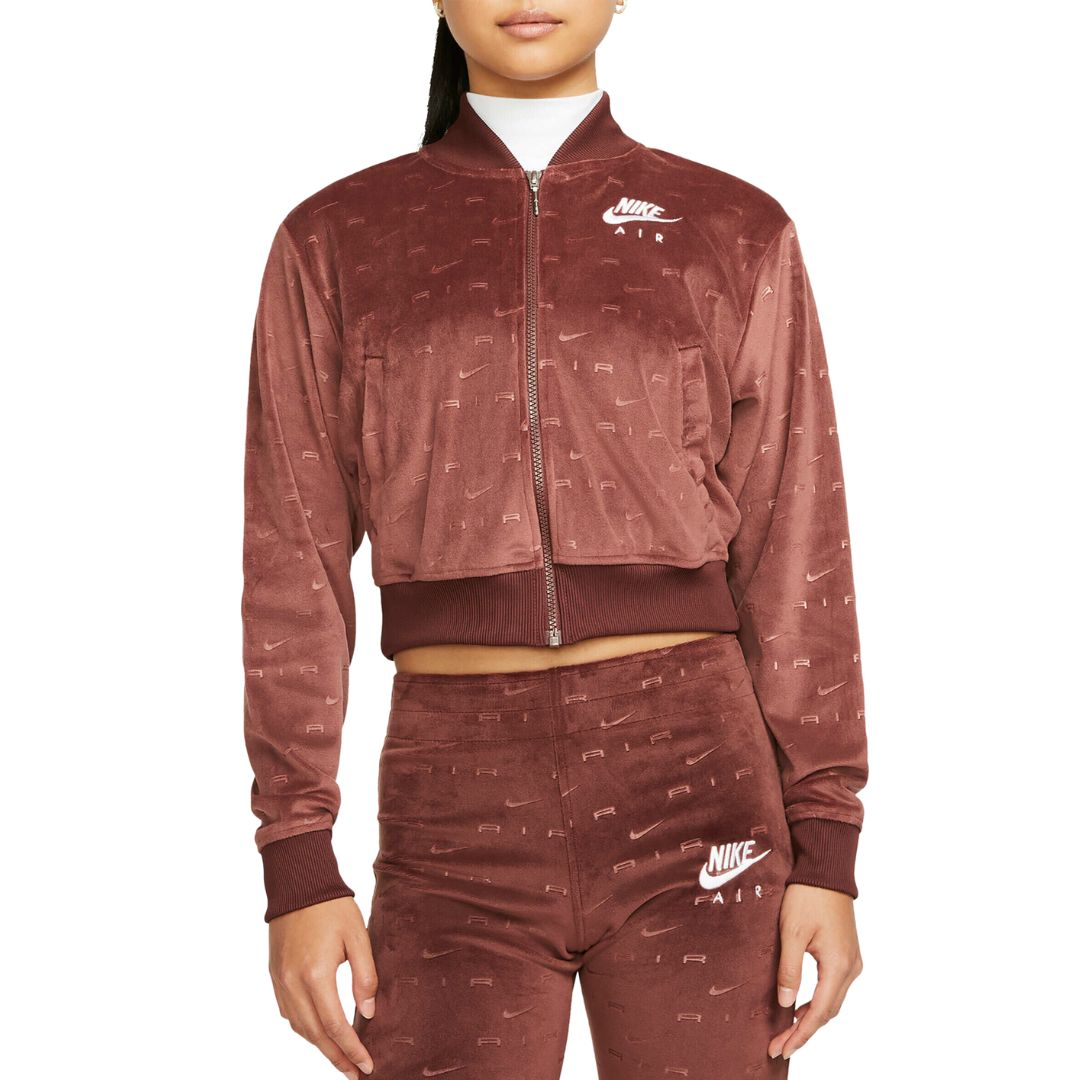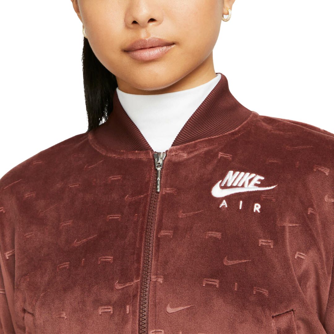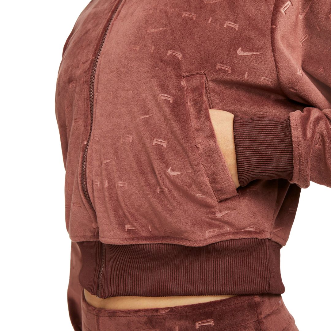 Instantly upgrade the glam in your wardrobe with the Women's Nike Air Full-Zip Velour Jacket. Slightly cropped for chic style, this jacket is bound to be a staple of aesthetic when coziness comes first.