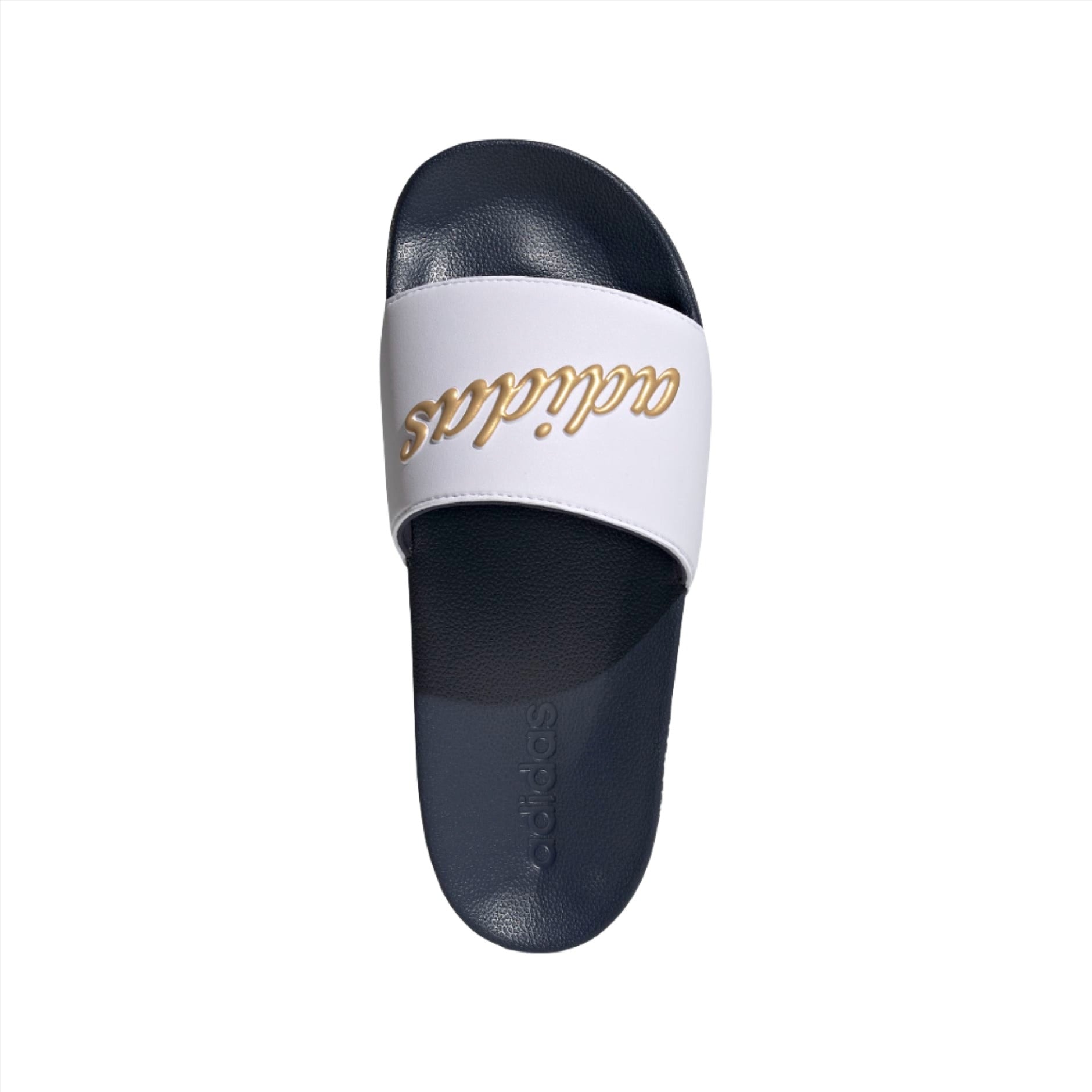 From the pool deck to the shower to the couch, these slides are made for the work-hard-rest-hard lifestyle. The slip-on construction gives you a snug fit that's easy to kick on and off as needed. Lightweight cushioning keeps your feet cradled in all-day comfort. The adidas script logo adds an extra touch of class to the iconic Adilette look.