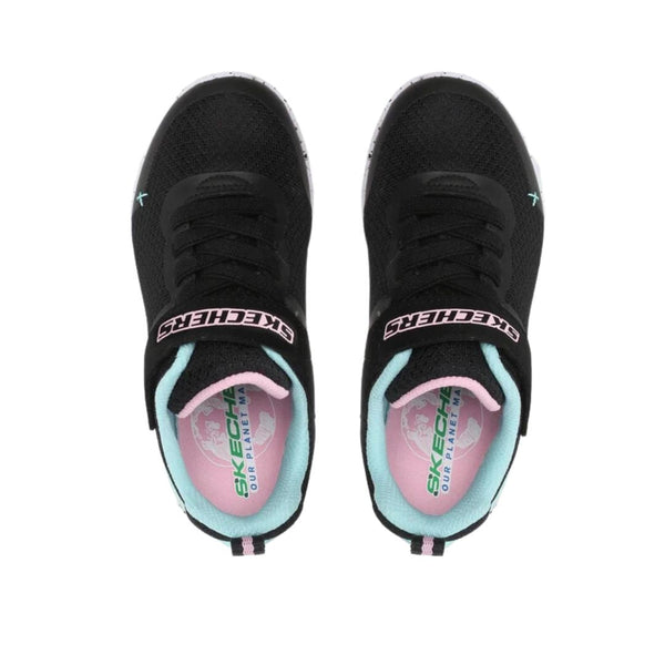 Make a green difference in fun and sporty comfort with Skechers Microspec - Eco Fun. Designed with recycled materials this style features an engineered upper with hotmelt overlays, a speckled cushion midsole, instep strap and stretch laces. Our Planet Matters™: Good for your feet. Good for the world.™ Construction Engineered mesh and hotmelt overlay upper Stretch laces with an instep strap Shock-absorbing speckled midsole Flexible traction outsole Machine washable 1-inch heel Skechers® logo detail Details Upper fabric is made with 100% recycled polyester (excluding strap, gore and hotmelt on toecap and eye row) Heel and counter webbings are made with 100% recycled polyester Sock bed lining is made with 60% recycled cotton Insole strobel is made with 80% recycled polyester. Cushioned comfort insole