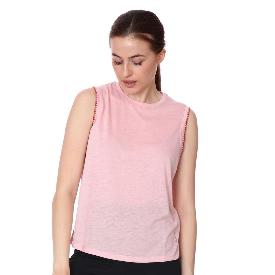 The crochet trim on the sides of the Nike women's sports t-shirt adds a flattering touch to your look, the lightweight elongated design reduces bulk as you flex, works steadily with Dri-FIT technology to repel sweat that settles on your skin with every movement.