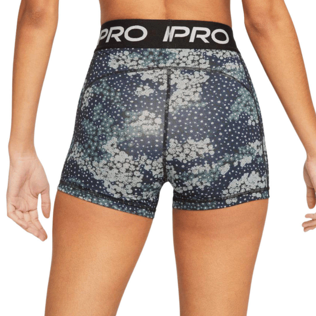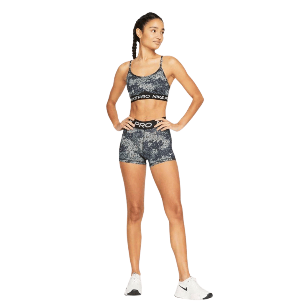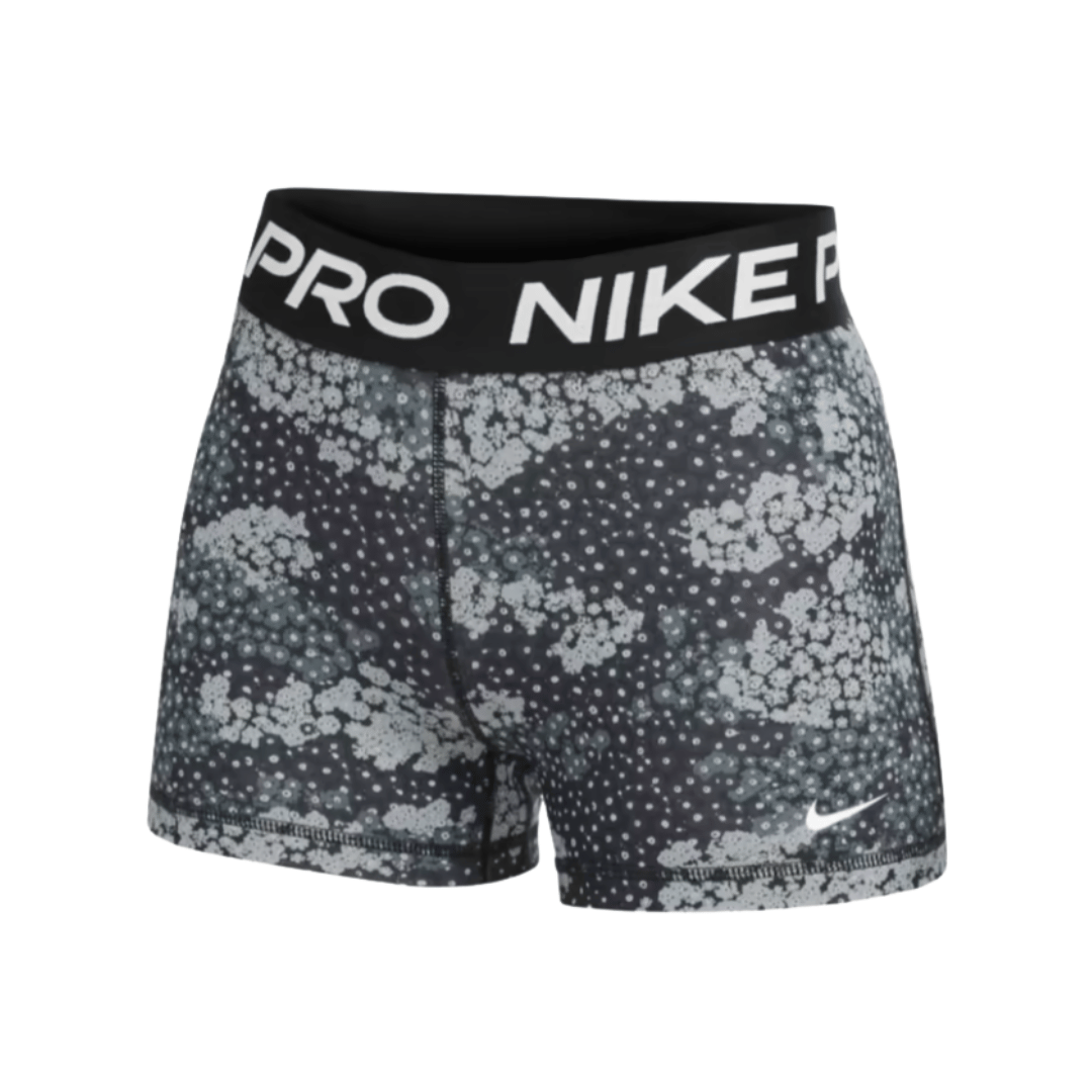 For any woman seeking a reliable, breathable athletic short that won’t slide, bunch, or irritate the skin, the Nike Pro 3” Short is a simple solution. Available here in Aviator Gray / Black / White with NIKE PRO branding across the waistband in white.