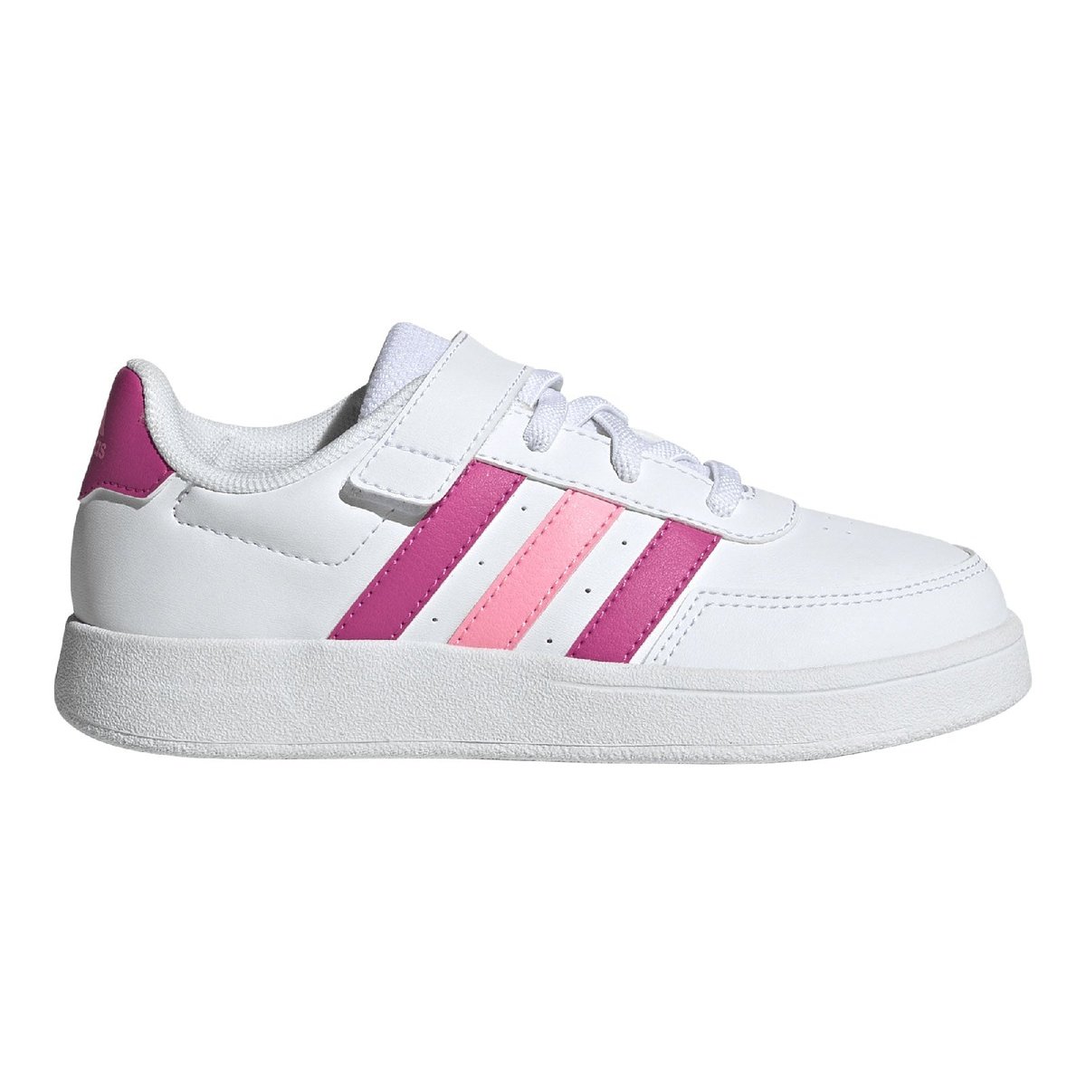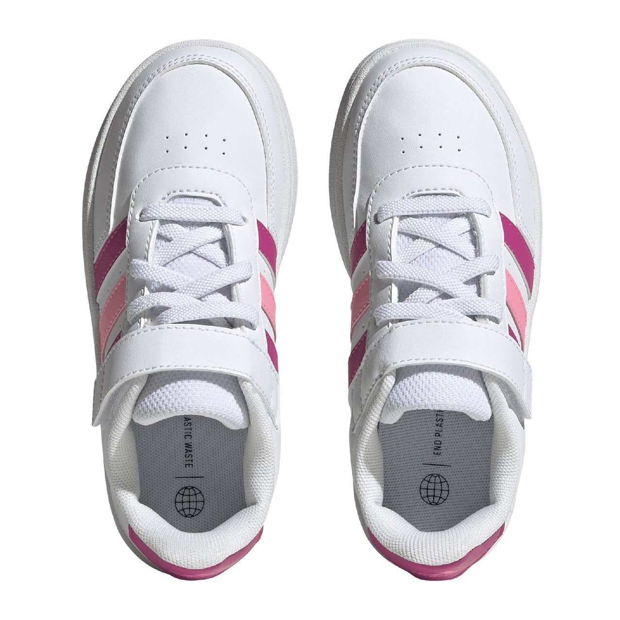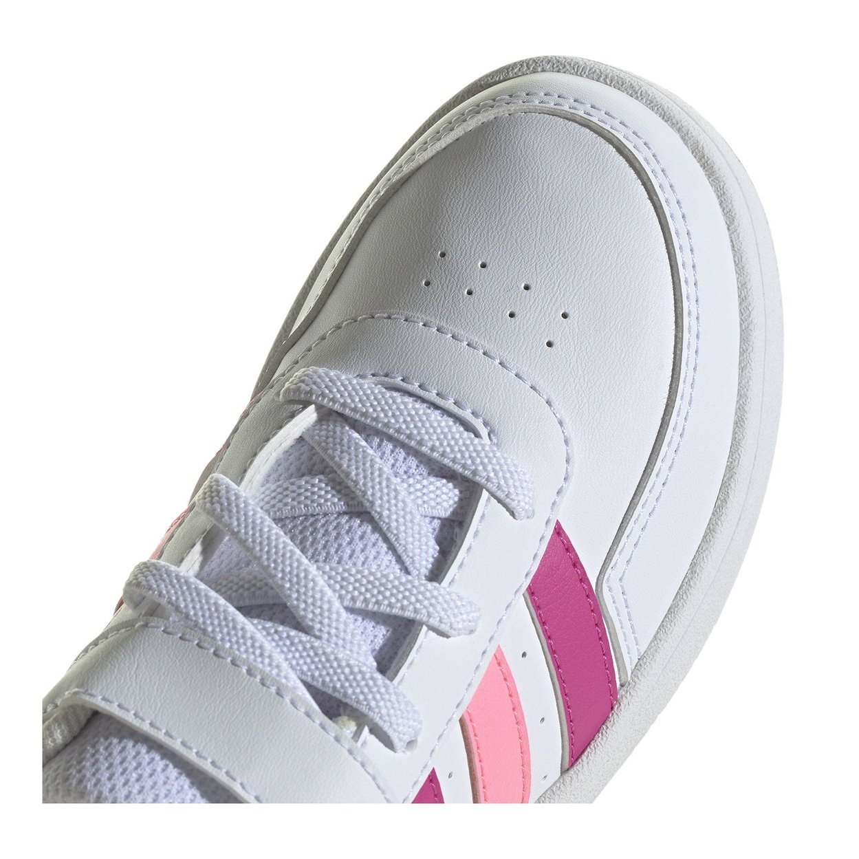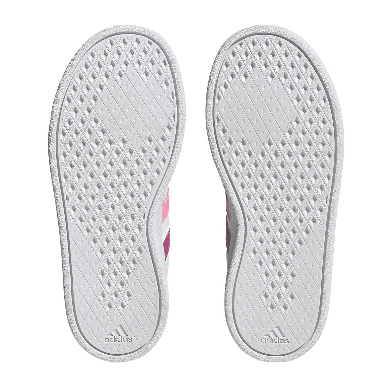 A classic '9s look makes a comeback in these kids' tennis-inspired adidas shoes. The modern synthetic leather upper includes elastic laces and a top hook-and-loop strap for a snug fit. Iconic 3-Stripes add the ideal finish for everyday wear or school. Made with a series of recycled materials, this upper features at least 5% recycled content. This product represents just one of our solutions to help end plastic waste.
