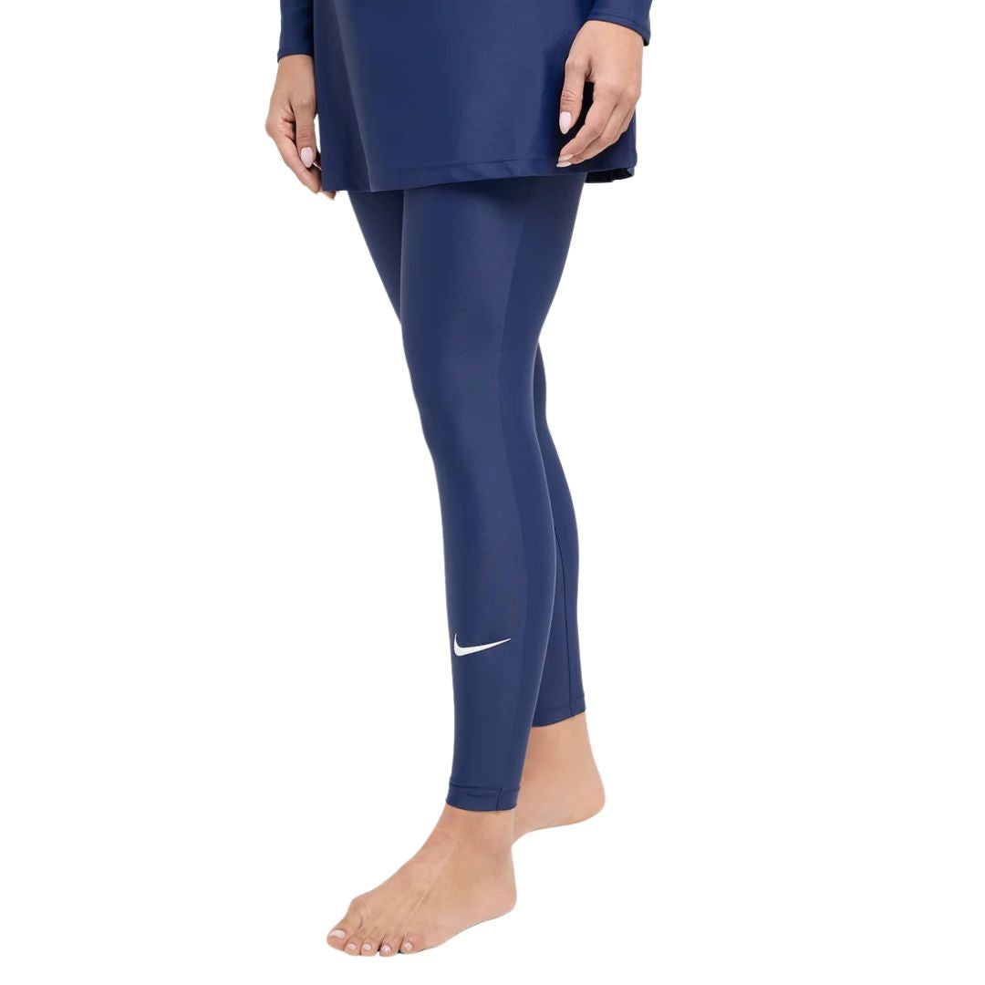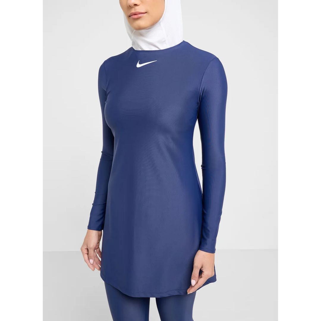 Designed for comfort, performance, and modesty, the Nike Victory Full-Coverage Swimsuit offers a streamlined solution for female athletes who prefer full coverage. Crafted with stretch fabric and featuring a sleek navy design, this three-piece set includes a tunic, pants, and a built-in hijab to ensure full mobility and confidence in the water.